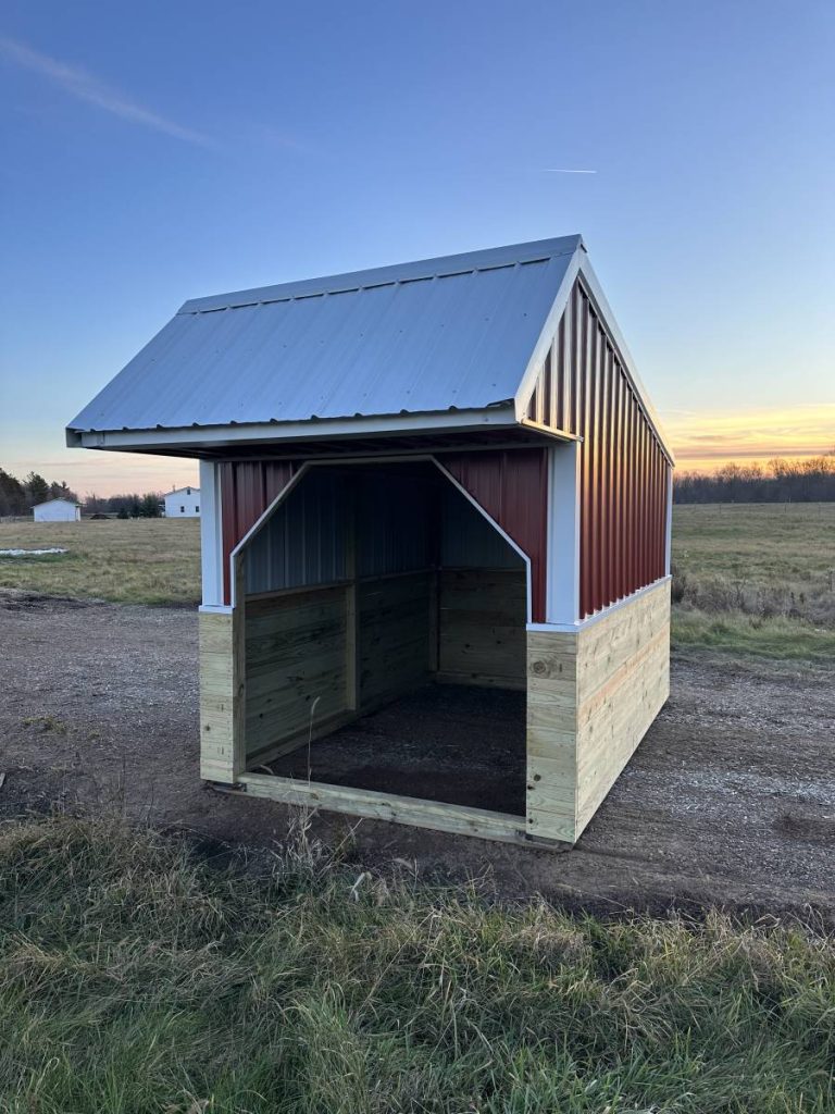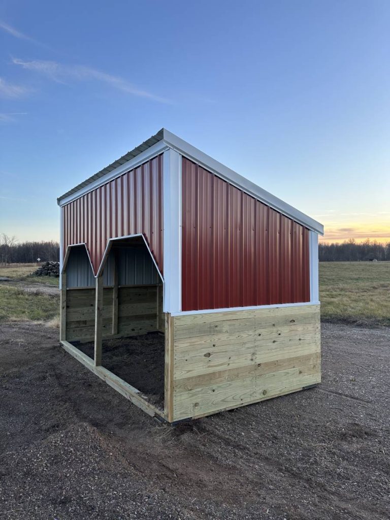 In need of an animal shelter? We can build them in several configurations, including custom orders! Give us a call at (715) 314-0804 to discuss your needs, or send a message on our contact page. We look forward to hearing from you!
